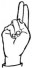 На ћирилици написано АНДРЕЈА МИЛИЈЕВИЋ састоји се из 16 слова [?]. Исписано ћириличном једноручном азбуком за глувонеме: